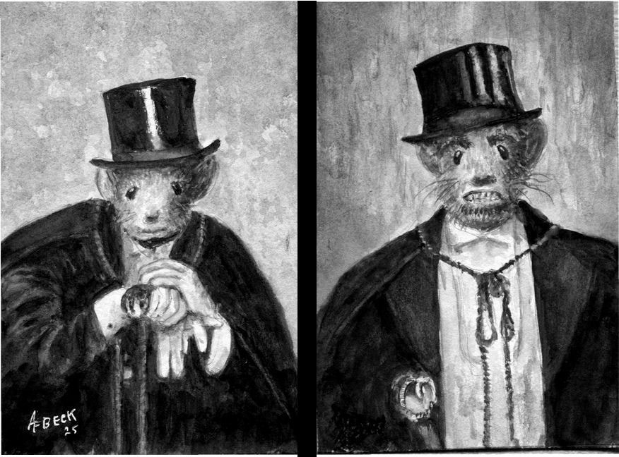 "Dr. Jekyllmouse and Hyde" Two 4" x 6" Water Color Framed $100 |