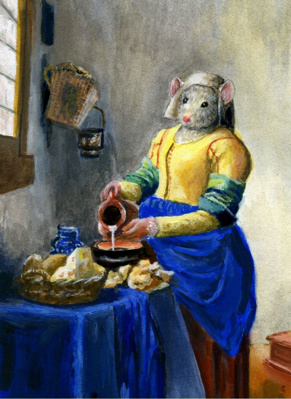 "The Milk Mouse" 5" x 7" Gouache Framed $175 |
