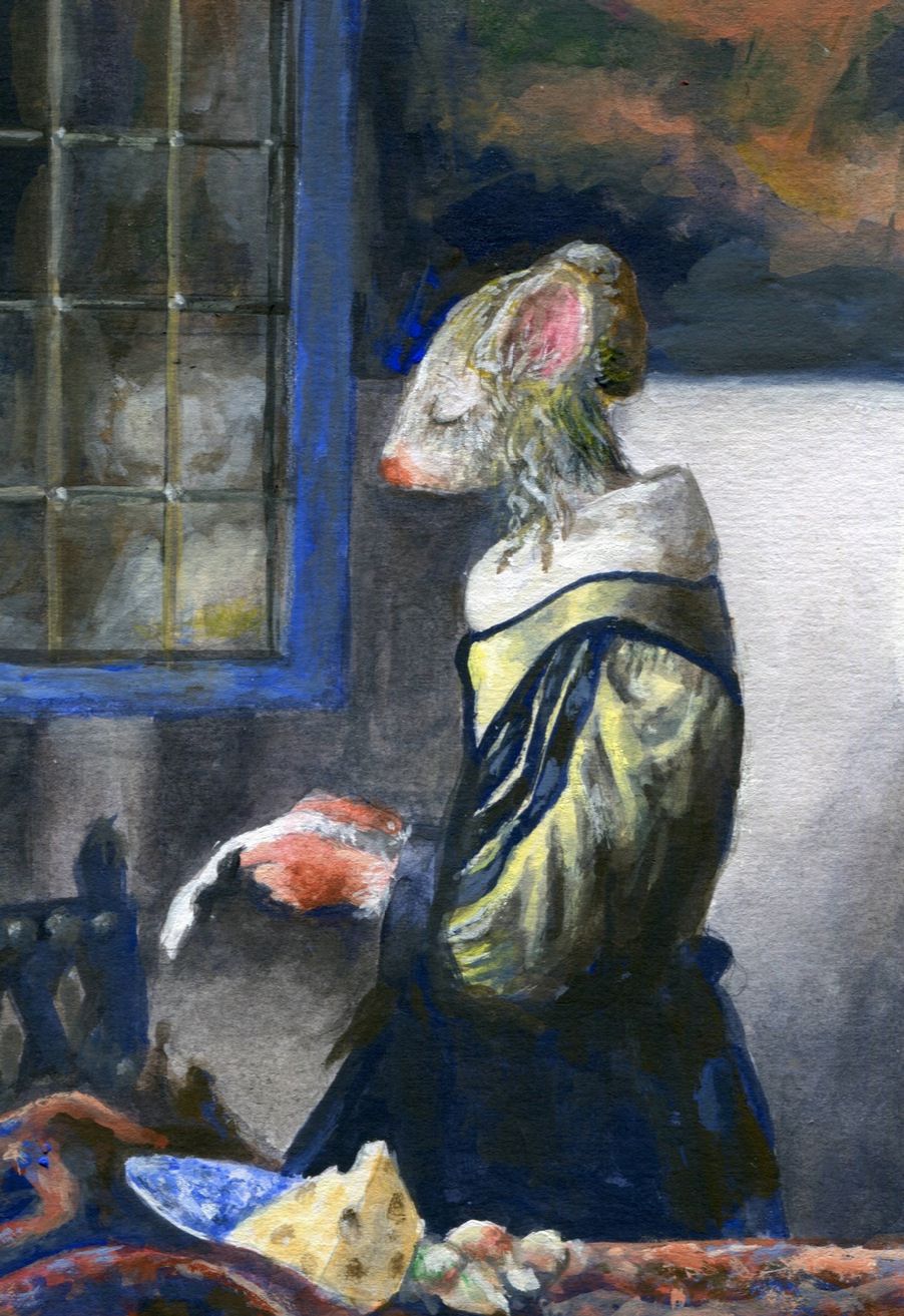 "Mouse Reading a Letter" 5" x 7" Gouache Framed $175 |